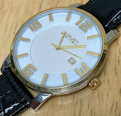 AUGUST Steiner Men Dual Tone Leather Swiss Analog Quartz Watch Hours~New Battery