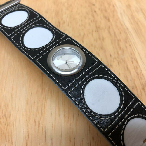 DKNY NY-3261 Lady 50m Silver Leather Cuff Analog Quartz Watch Hours~New Battery