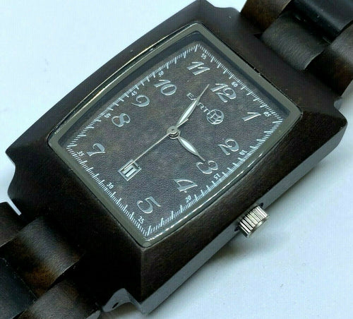 Earth Men All Brown Solid Wood Barrel Analog Quartz Watch Hours~Date~New Battery