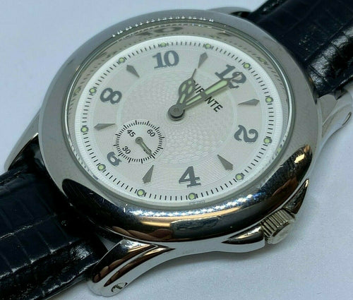 Dufonte Mens Small Seconds Leather Silver Analog Quartz Watch Hours~New Battery