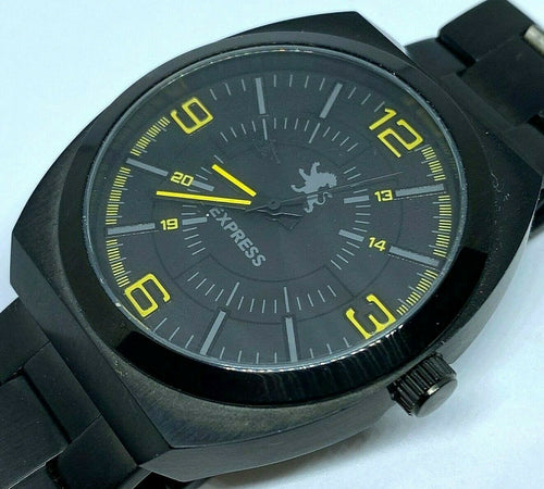 Express Mens 30m Black Steel Japan Movt Analog Quartz Watch Hours~New Battery