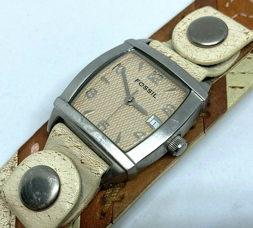 Fossil JR-8836 Lady Leather Bund Band Analog Quartz Watch Hours~Date~New Battery