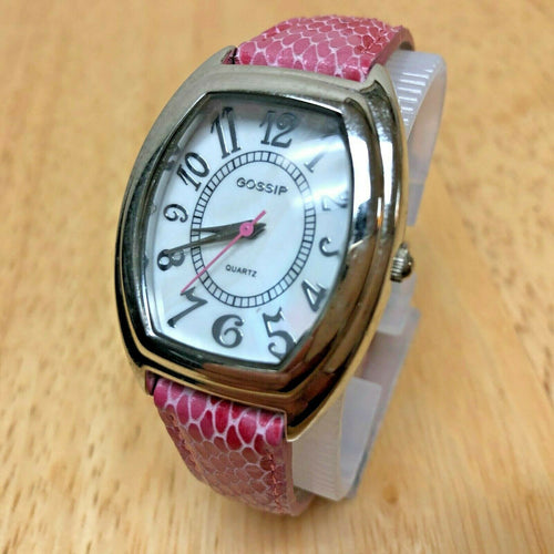 Gossip Lady Silver Barrel MOP Leather Band Analog Quartz Watch Hours~New Battery