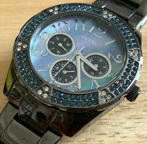 Guess 100m Black Rhinestone Steel Analog Quartz Watch Hours~Day Date~New Battery