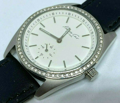 Kenneth Cole Men Lady Small Second Silver White Analog Quartz Watch Hour~New Bat