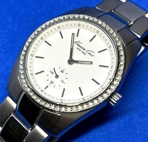 Kenneth Cole Lady Silver Rhinestone MOP Analog Quartz Watch Hour~Date~New Batter