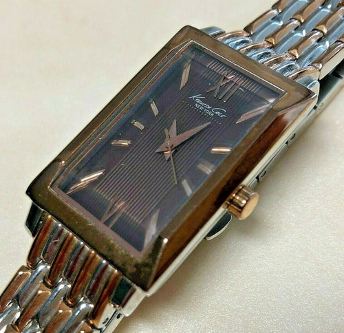 Kenneth Cole KC4622 Dual Tone Steel Rectangle Analog Quartz Watch Hours~New Batt