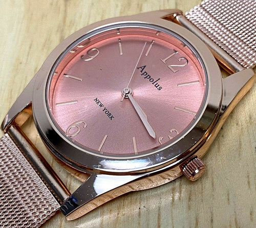 Appolus New York Men Rose Gold Tone Mesh Band Analog Quartz Watch Hours~New Batt