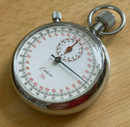 Vintage Endura Silver White Swiss 1/10 Hand-Wind Mechanical Stopwatch