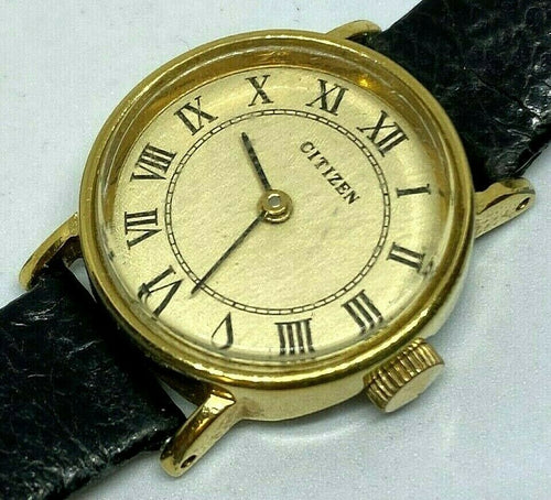 Vintage Citizen Japan Lady Gold Tone Leather Hand-Wind Mechanical Watch Hours