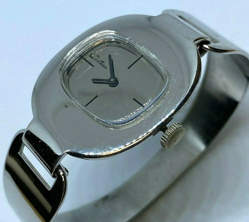 Vintage Chateau Lady Silver Cuff Bangle Mirror Hand-Wind Mechanical Watch Hours