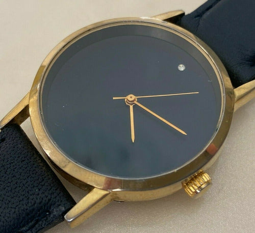 Vintage Acent Mens Classic Gold-Black Leather Hand Wind Mechanical Watch Hours