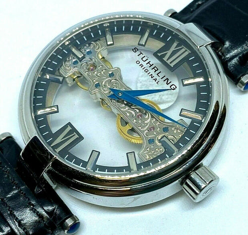 Rare Stuhrling ST-90005 Men 50m 20 Jewel Skeleton Self-Wind Automatic Watch Hour