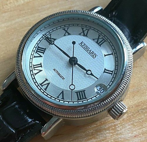 Kessaris Lady Silver Fluted Bezel Roman Self-Wind Automatic Watch Hours~Date