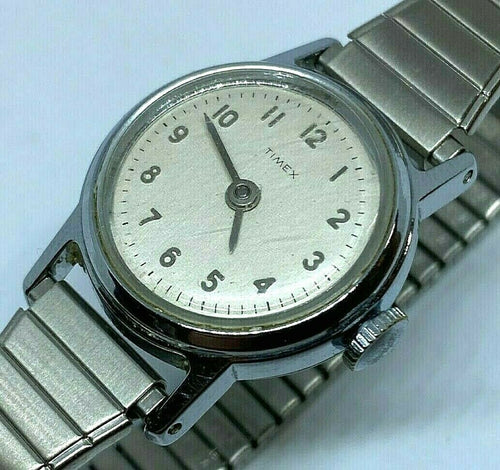 Early Vintage Timex Lady Classic Silver Stretch Hand-Wind Mechanical Watch Hours
