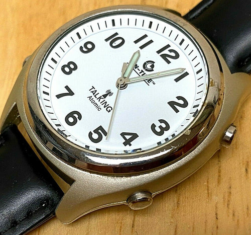 On-Time Men Atomic Radio Controlled Talking Leather Analog Watch Hour~New Batter