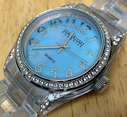 Joan Rivers Men Lady Clear Plastic Rhinestone Analog Quartz Watch Hours~New Batt