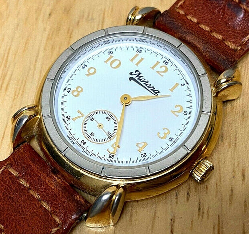 Vintage Merona Mens Gold Tone Small Second Analog Quartz Watch Hours~New Battery