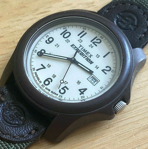Timex Expedition Indiglo Men 50m Brown Analog Quartz Watch Hour~Date~New Battery