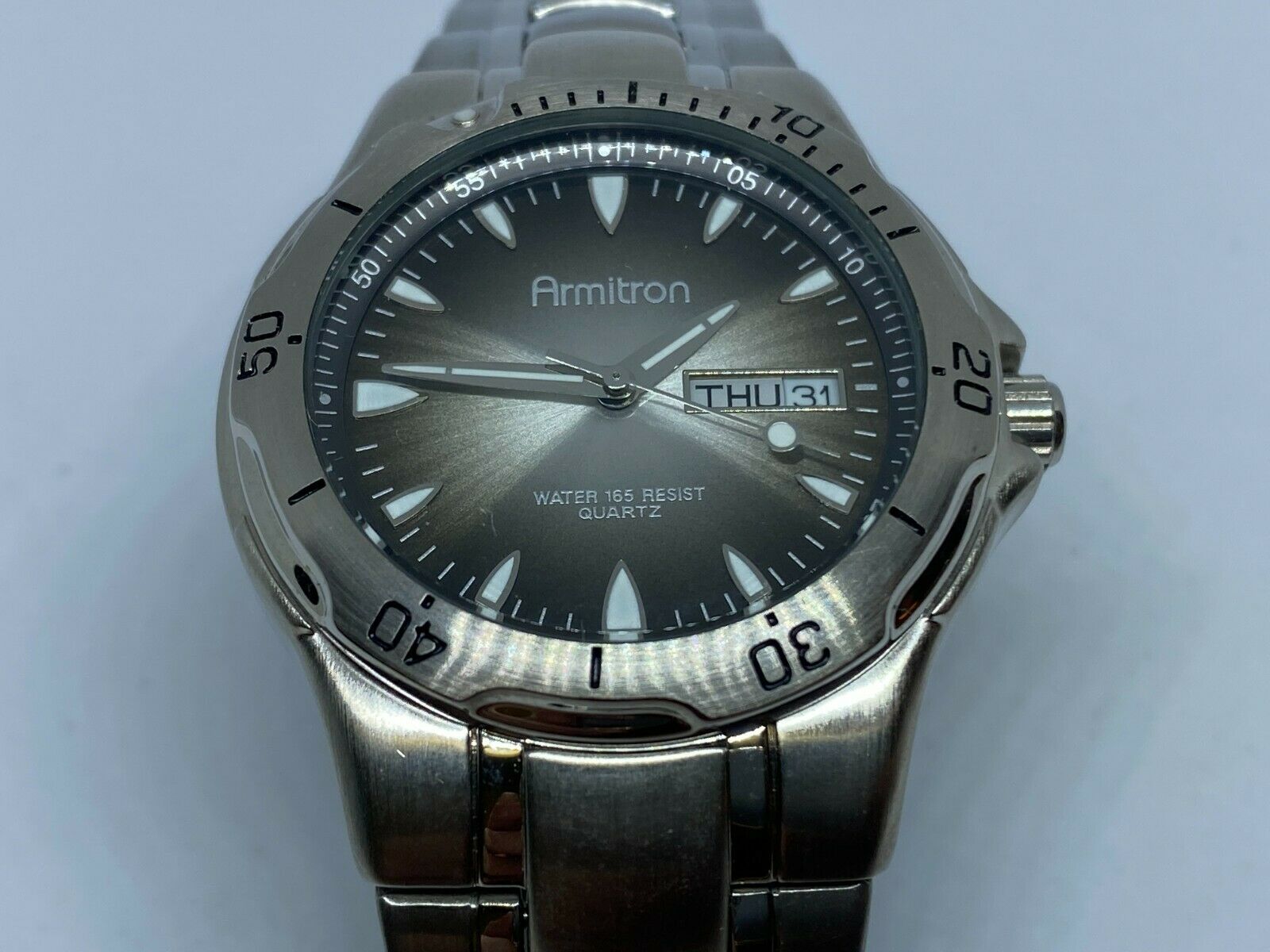 Armitron Mens 50m Moving Bezel Silver Analog Quartz Watch Hours~Date~New Battery
