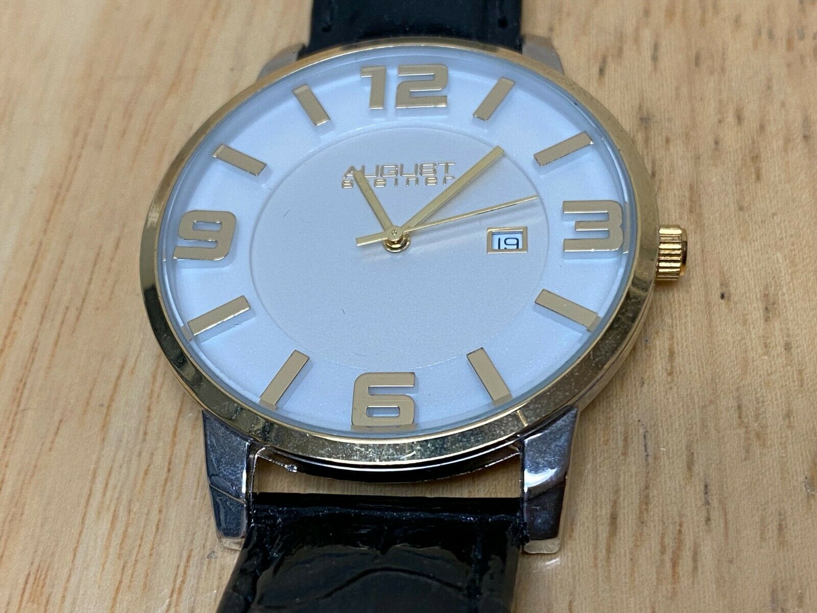 AUGUST Steiner Men Dual Tone Leather Swiss Analog Quartz Watch Hours~New Battery