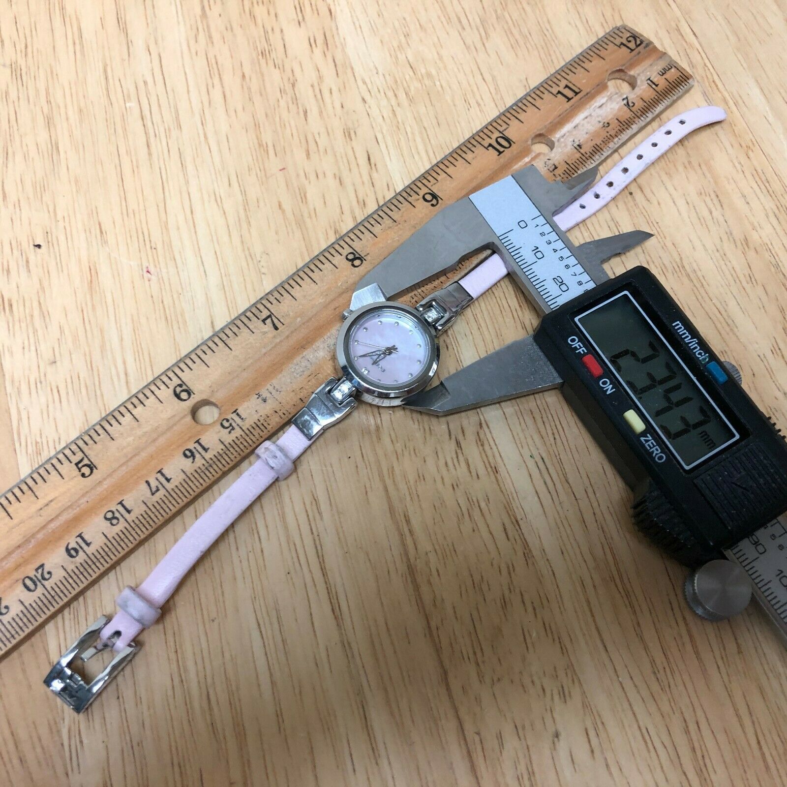 Watch dimension and size: please review the last image for size measurements. Shown on caliper is the approximate watch width in mm without crown or button.