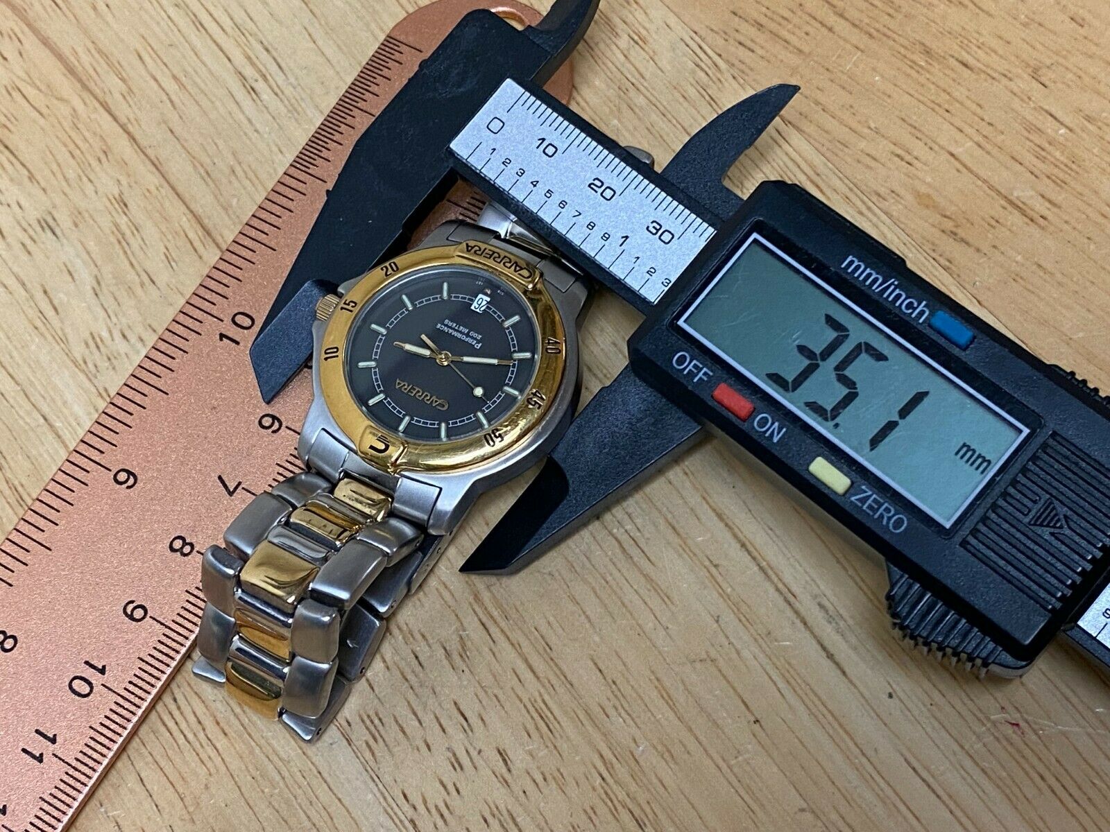 Watch dimension and size: please review the last image for size measurements. Shown on caliper is the approximate watch width in mm without crown or button.