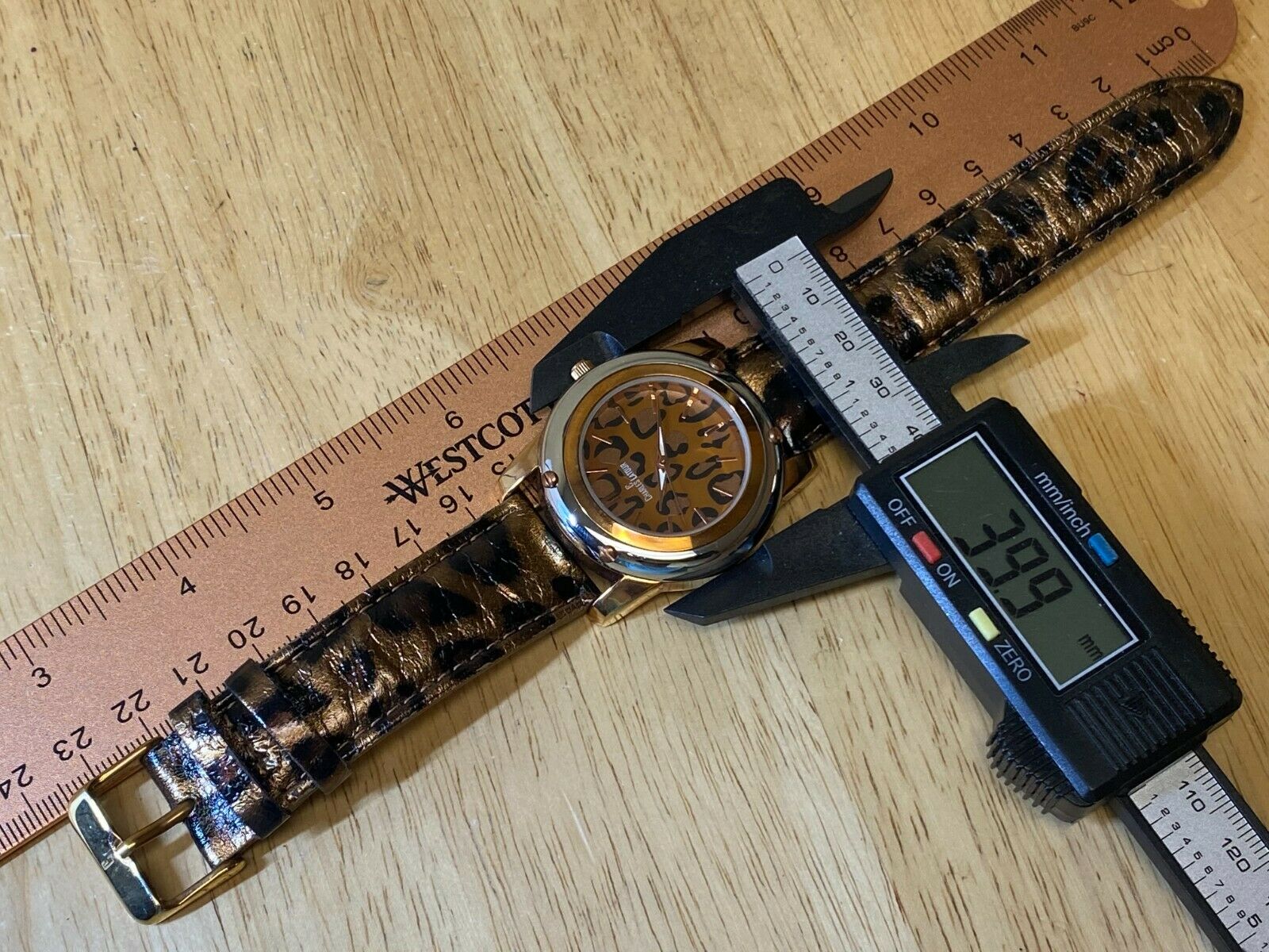 Watch dimension and size: please review the last image for size measurements. Shown on caliper is the approximate watch width in mm without crown or button.