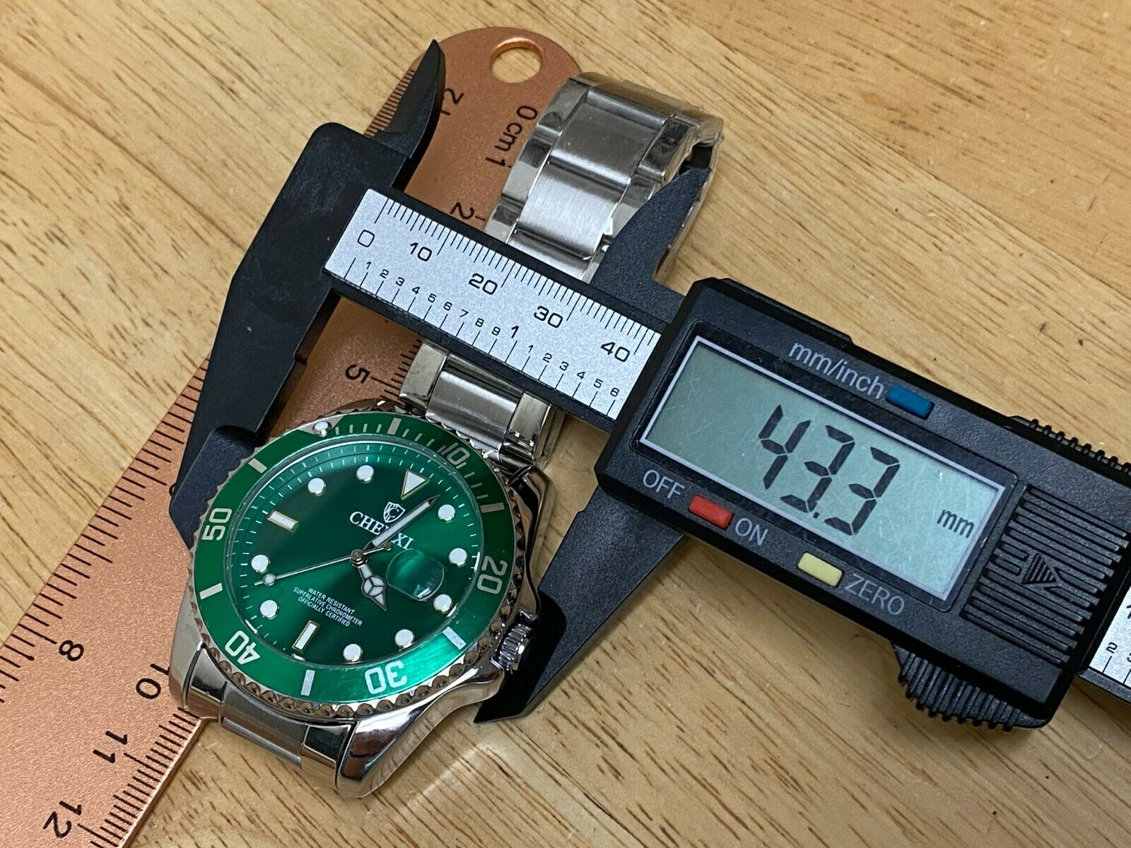 Watch dimension and size: please review the last image for size measurements. Shown on caliper is the approximate watch width in mm without crown or button.