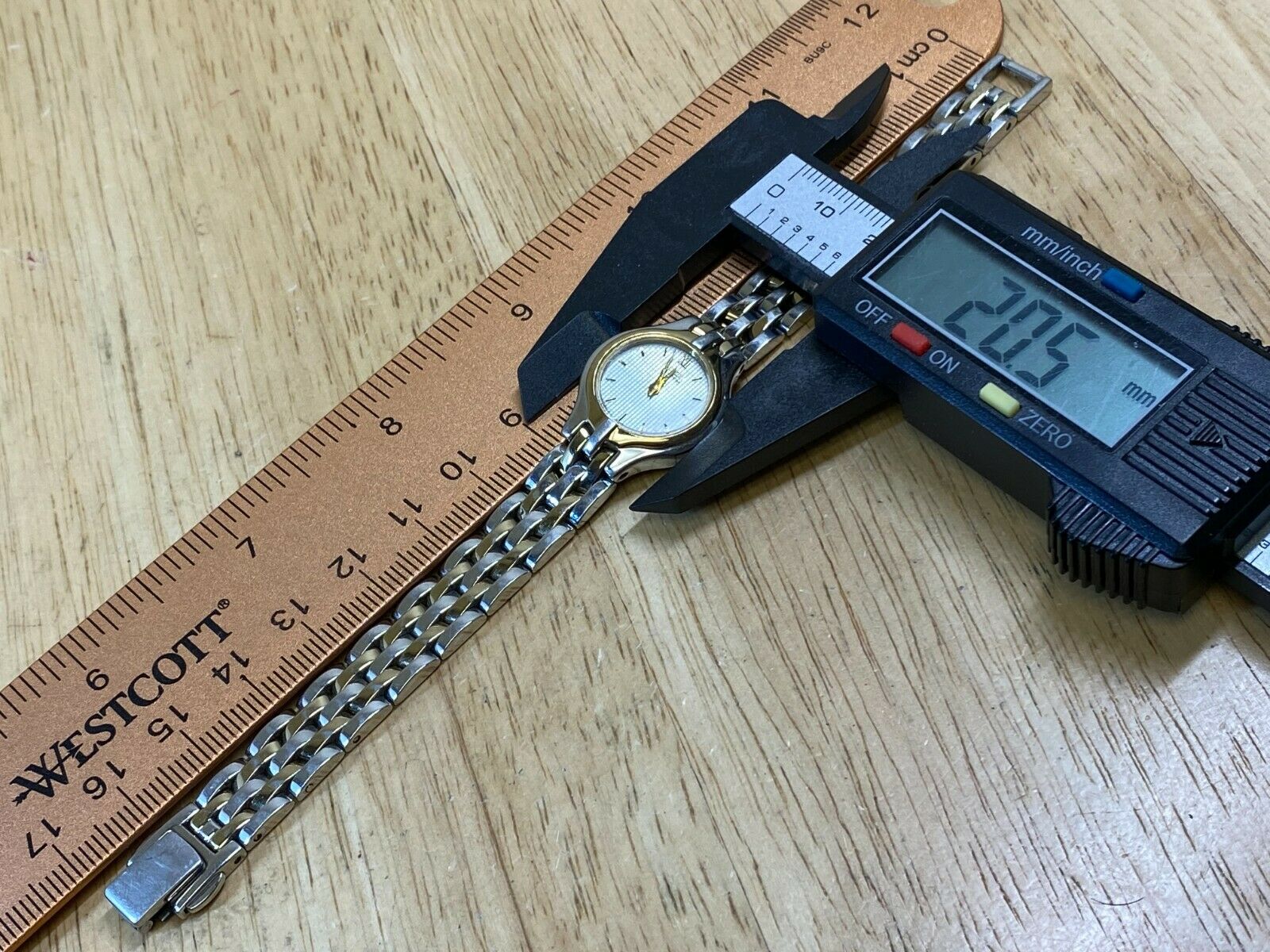 Watch dimension and size: please review the last image for size measurements. Shown on caliper is the approximate watch width in mm without crown or button.