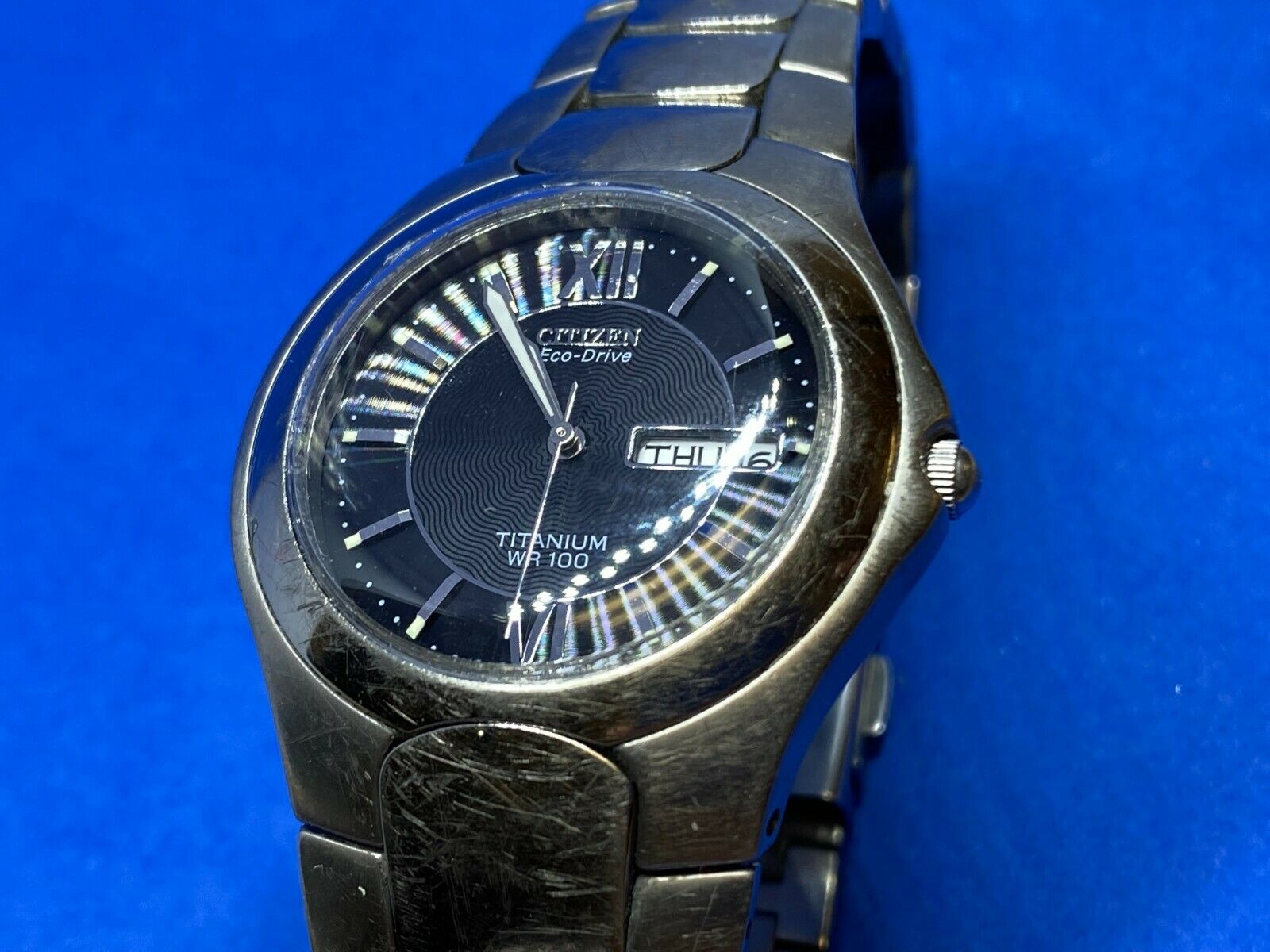 This watch runs and and keeps time while being charged and placed in light. However, the performance and life of rechargeable battery has not been tested and so is not guaranteed. It is buyer's responsibility to replace the battery if needed. Please review images to make your judgment on cosmetic condition which I believe is a matter of personal opinion. You will get what you see. Please also read the entire disclaiming text in the description section about the vintage watches in general. As an used vintage item in general, there might be some dirt, scratches, and/or other forms of wear here and there, but nothing major for the age in my view except for pretty heavy wear on case and band, and non-original crystal. Again, please review all images to make your own judgment. Please ask any questions you have.