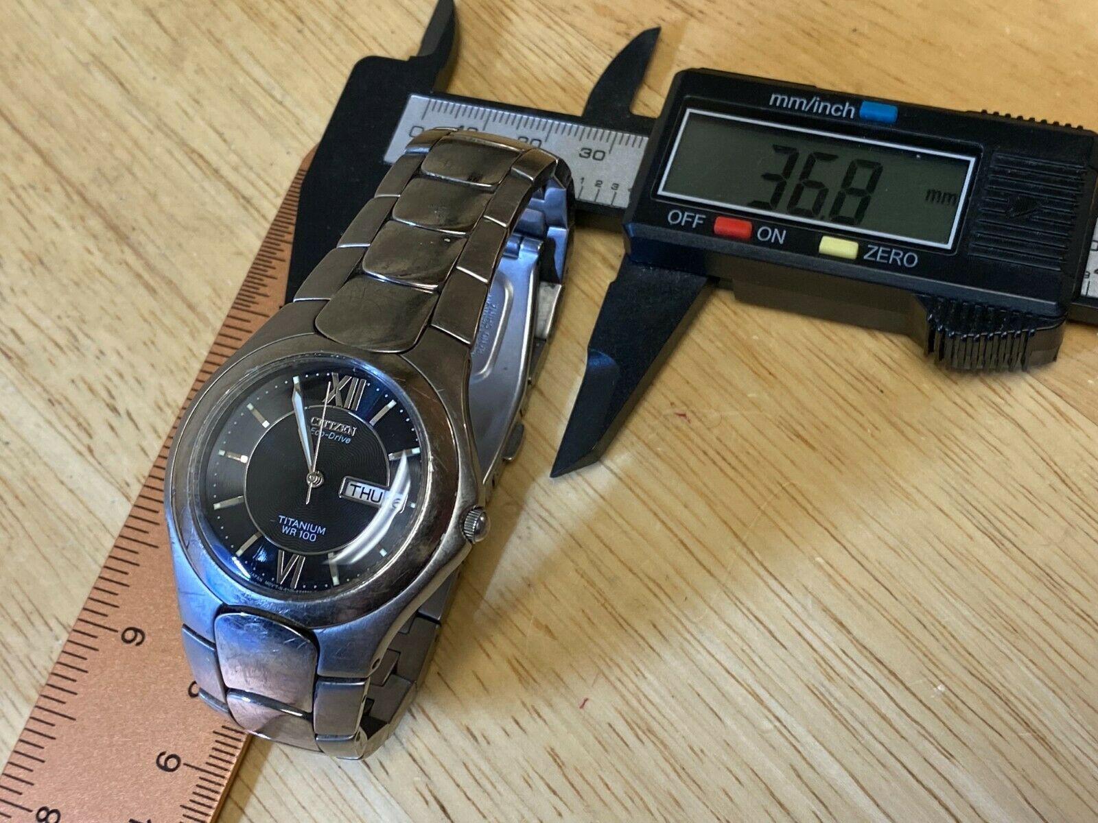 Citizen Eco-Drive E101 Men 100m Titanium Solar Analog Quartz Watch Hour~Day Date