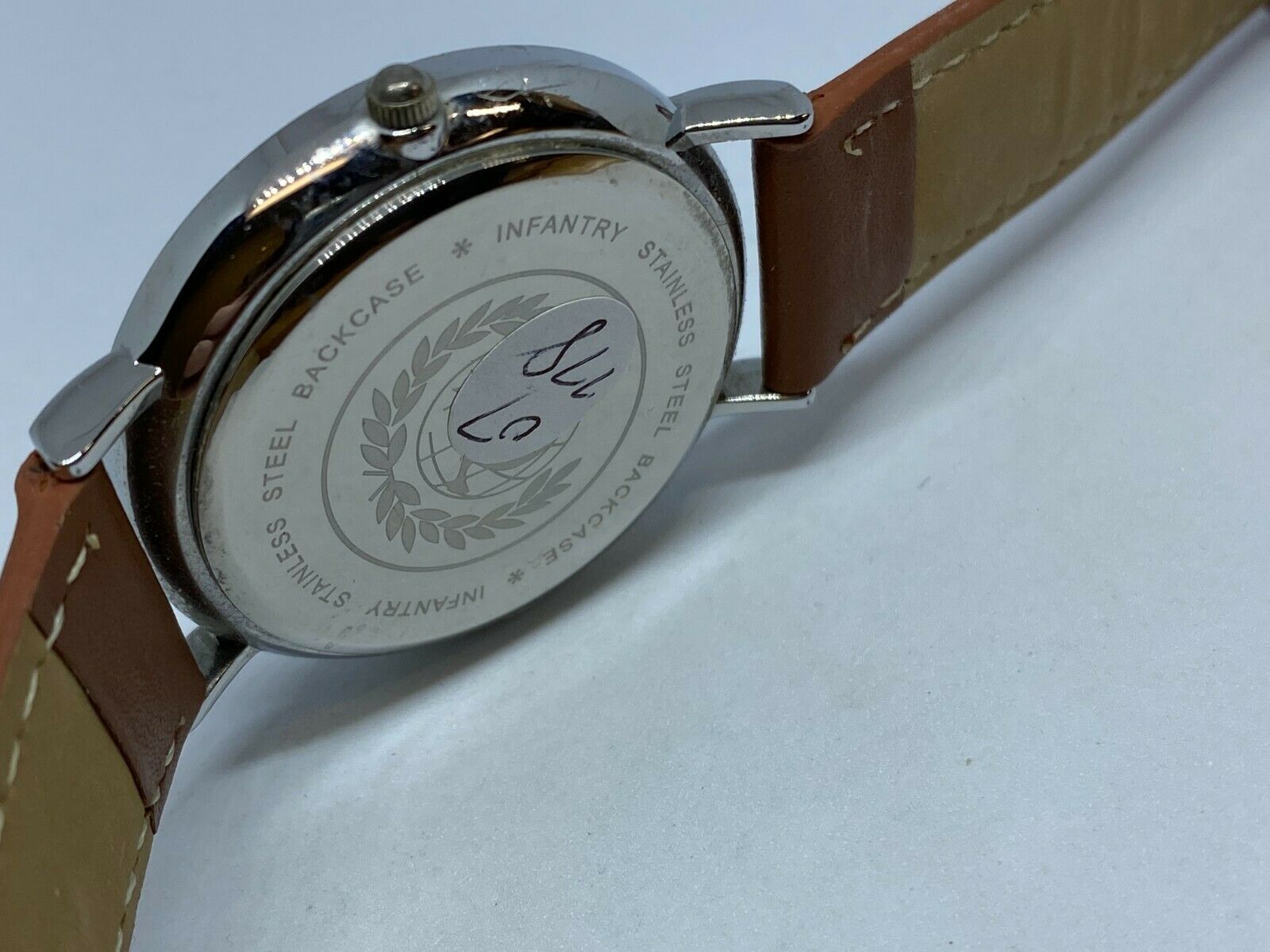 Clean MDC By Infantry Mens Silver Leather Analog Quartz Watch Hours~New Battery