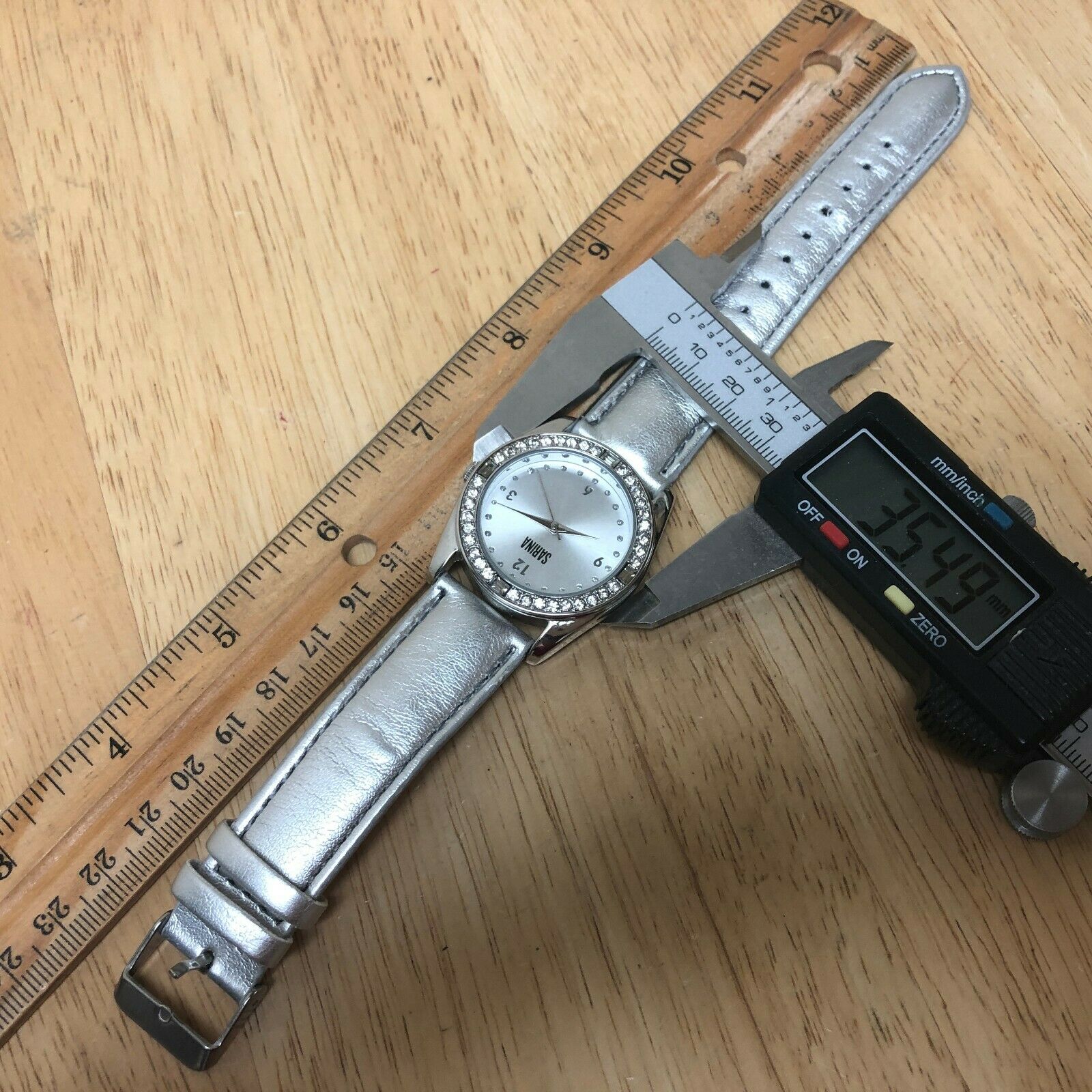 Clean Sarina Mens Lady Silver Rhinestone Analog Quartz Watch Hours~New Battery