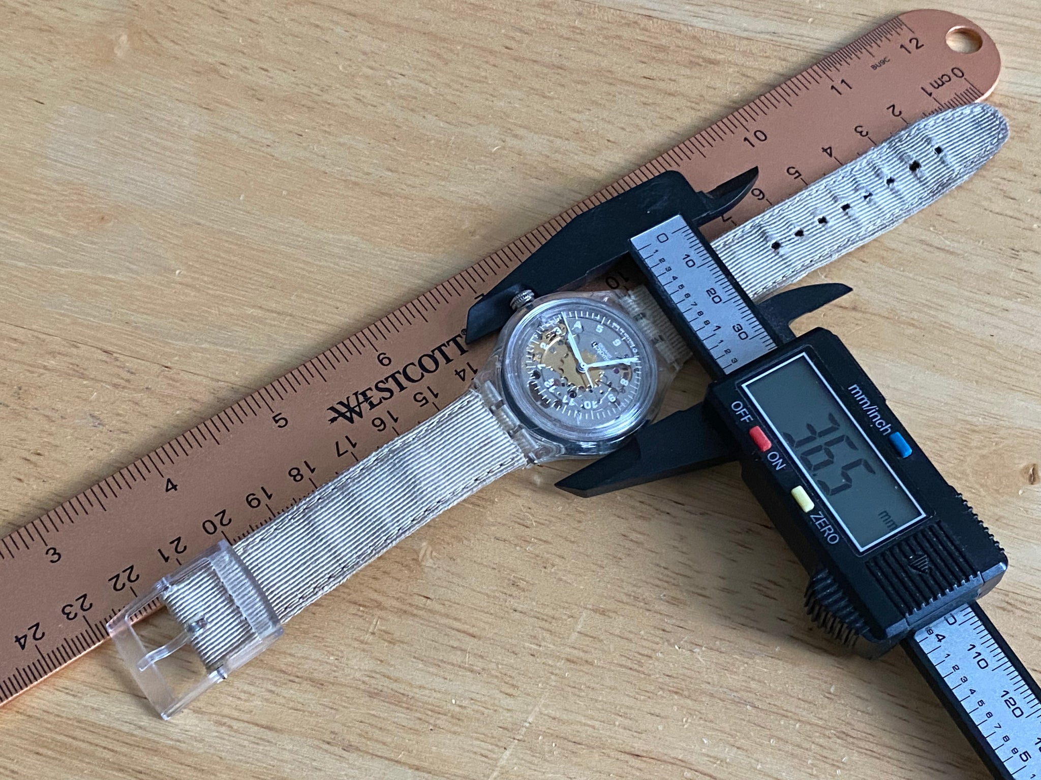For approximate size of the watch and length of band, please see the last image with a ruler scale placed next to the watch. Please be advised that this is an used watch; its band may have been adjusted (shortened, links removed etc) to fit wrist of the previous owner; we DON'T have extra links. So it is very important to make sure the overall length will be long enough for your wrist.