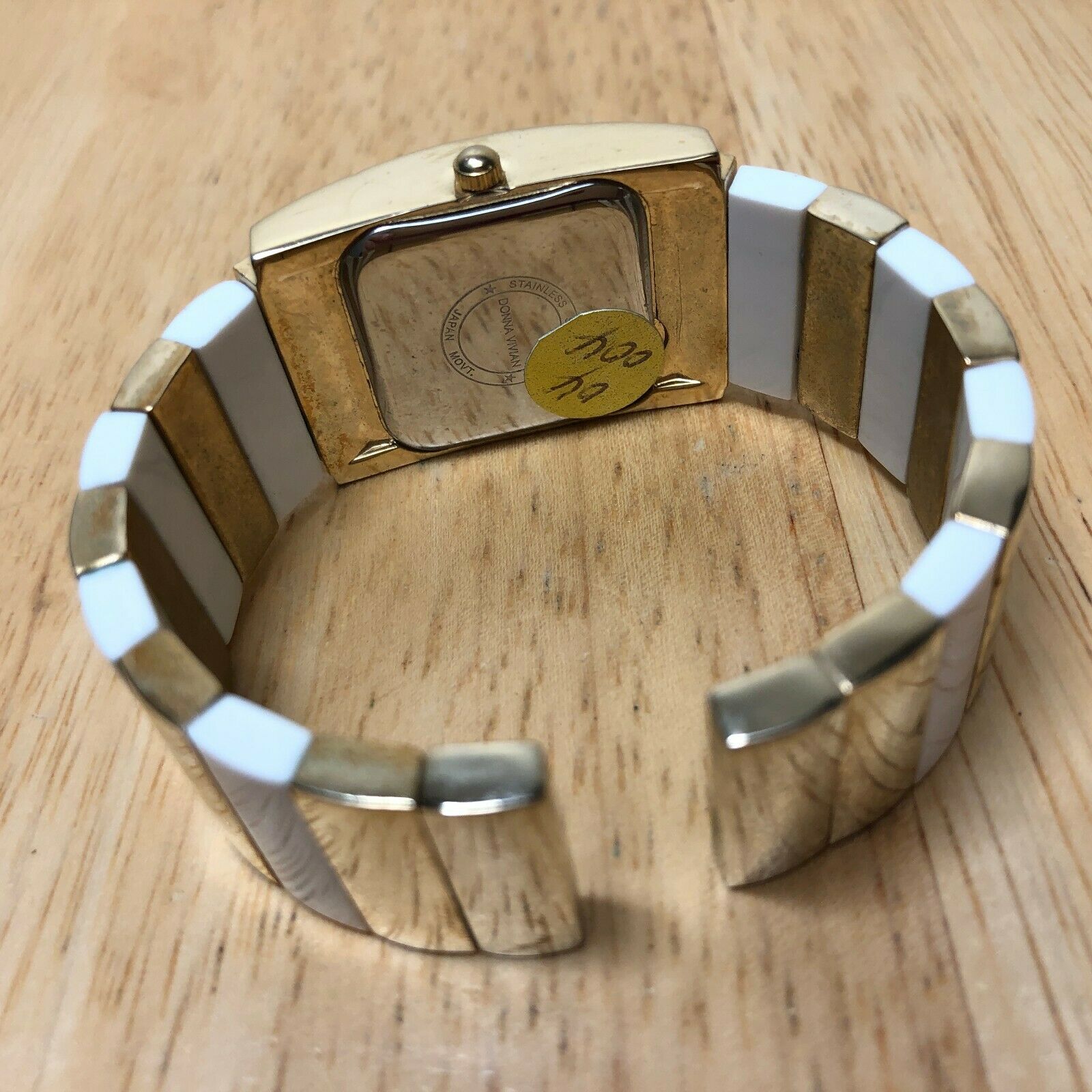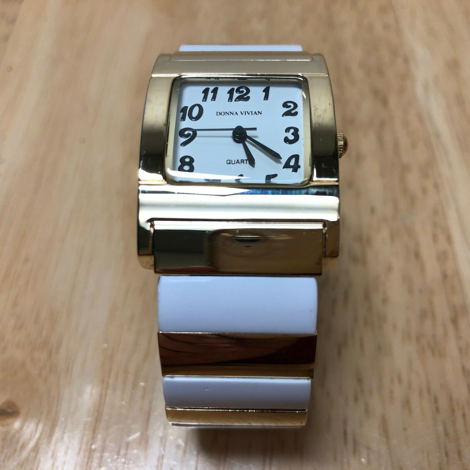 Donna Vivian Lady Gold-White Cuff Bangle Analog Quartz Watch Hours~New Battery