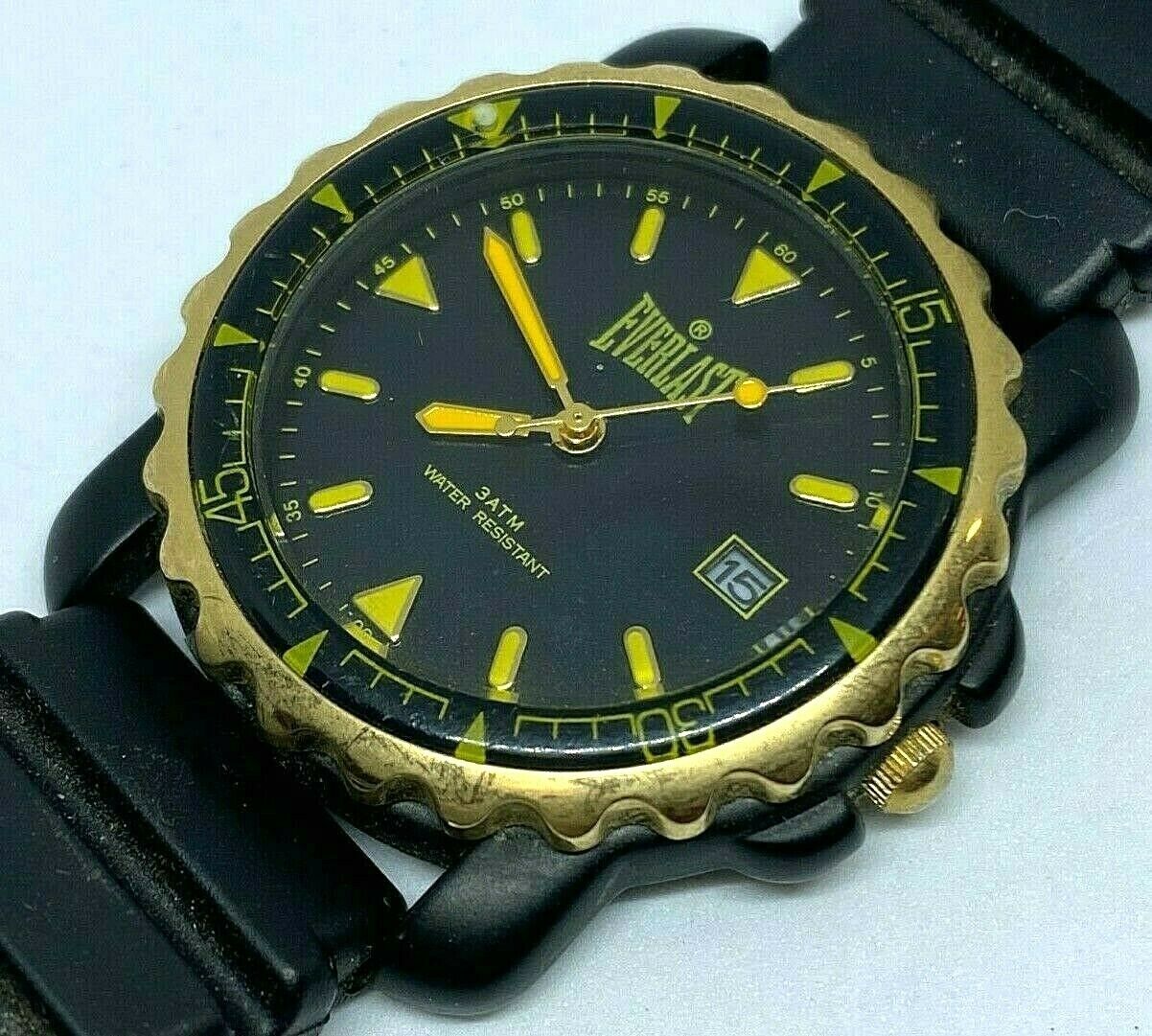 Everlast Men 30m Gold-Black Moving Bezel Analog Quartz Watch Hours~Date~New Batt