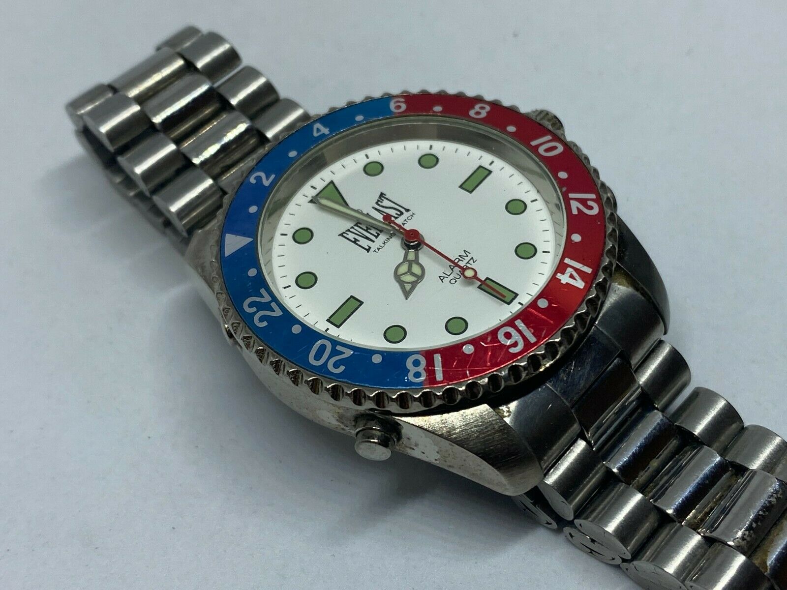 This watch is currently running smooth, keeping accurate time. I don't a manual, talking time is not set and calibrated with main clock. Alarm has not been tested. All buttons are responsive with talking. Battery was replaced within last month or so. But we still can NOT guarantee battery life due to various reasons such as unknown shelf time. If, by small chance, the battery is short lived, it is buyer's responsibility to replace it. Please review images to make your judgment on cosmetic condition which I believe is a matter of personal opinion. You will get what you see. Please also read the entire disclaiming text in the description section about the vintage watches in general. As an used vintage item in general, there might be some dirt, scratches, and/or other forms of wear here and there, but nothing major for the age in my view except for notable wear on case. Again, please review all images to make your own judgment. Please ask any questions you have.