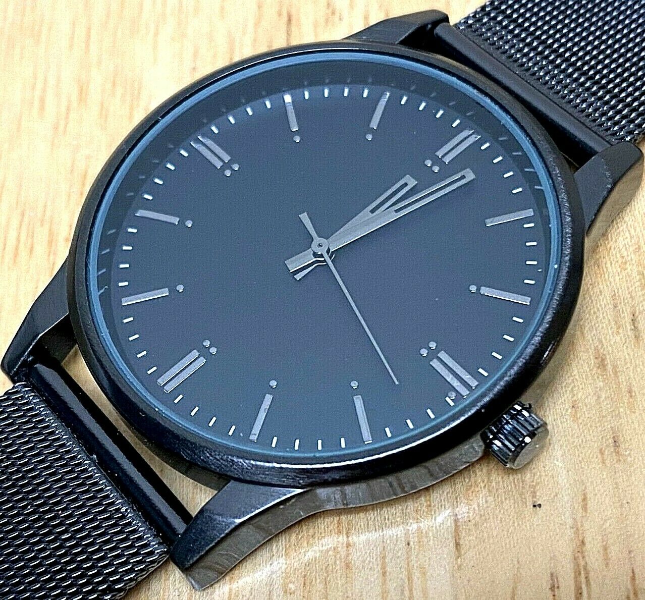 FMD Mens All Black Japan Movt Mesh Band Analog Quartz Watch Hours~New Battery