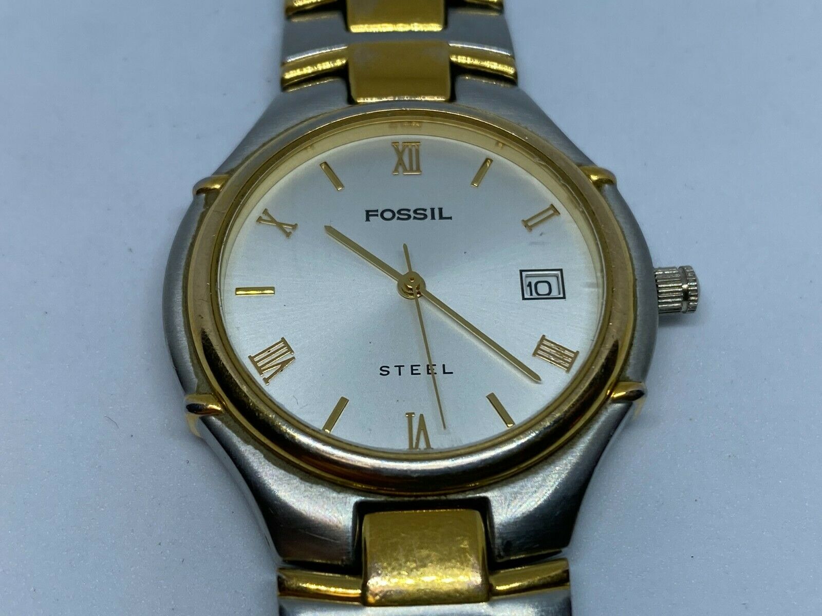 Fossil Steel FS-2700 Men 50m Dual Tone Analog Quartz Watch Hour~Date~New Battery