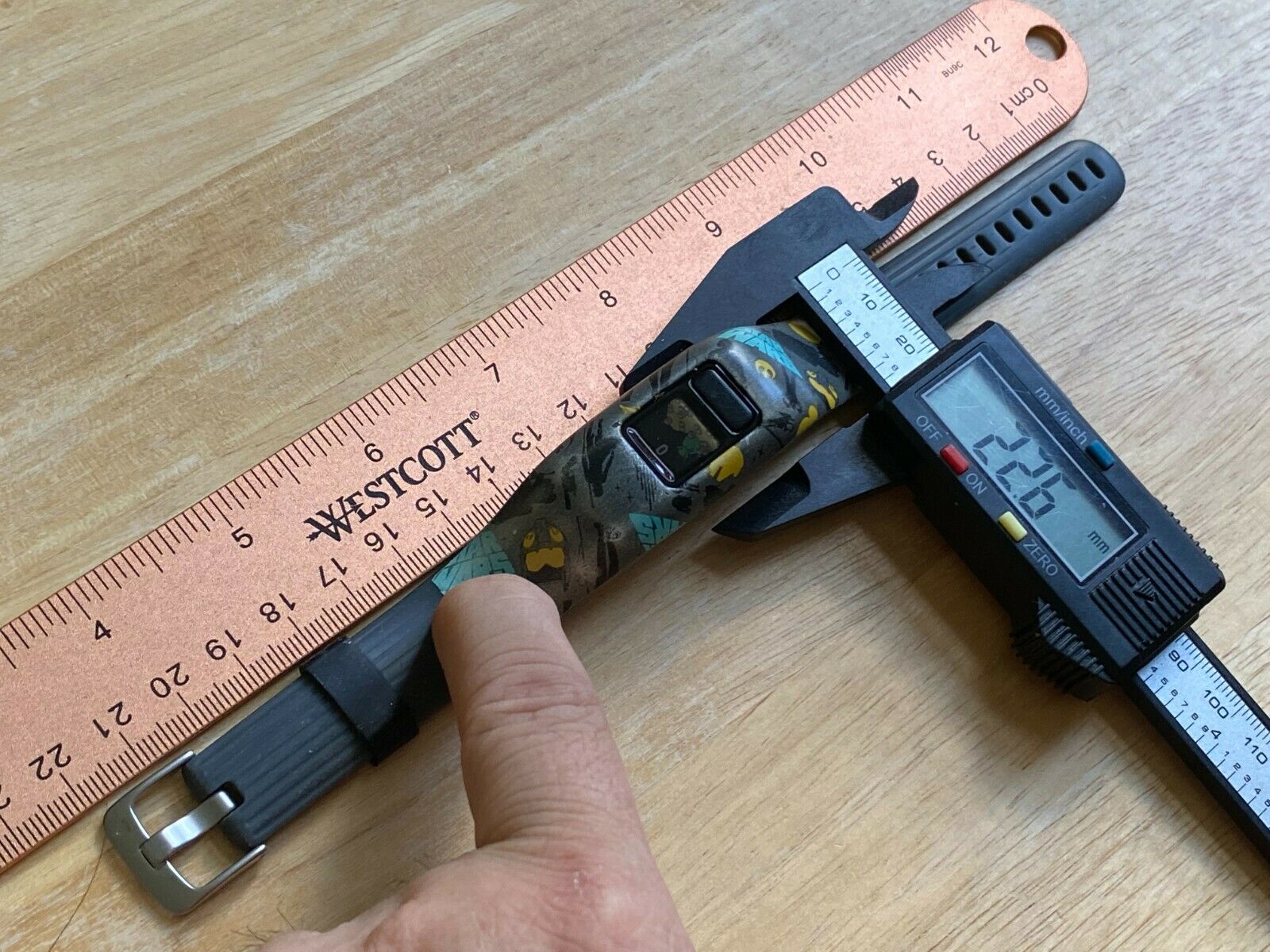 Watch dimension and size: please review the last image for size measurements. Shown on caliper is the approximate watch width in mm without crown or button.