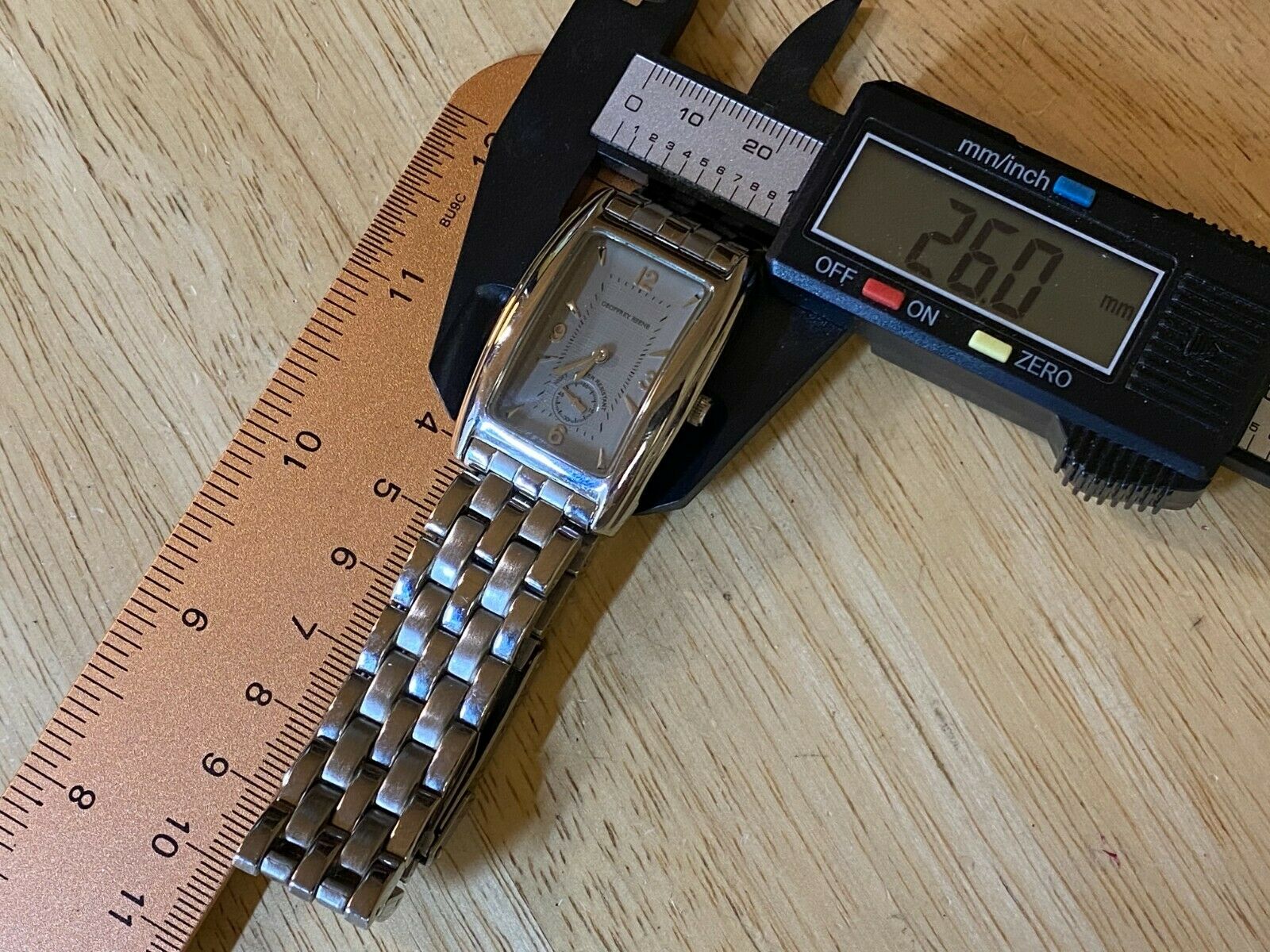 Watch dimension and size: please review the last image for size measurements. Shown on caliper is the approximate watch width in mm without crown or button.