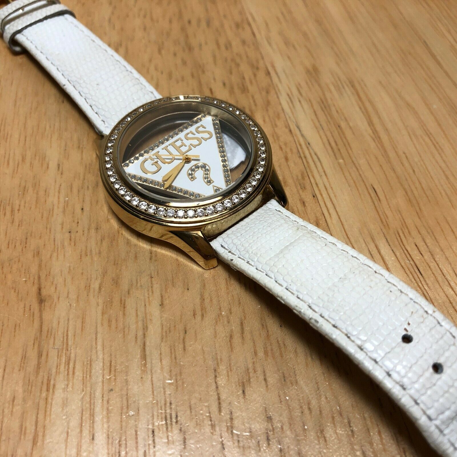 GUESS U10045L1 Lady Triangle Dial Gold Tone Analog Quartz Watch Hour~New Battery