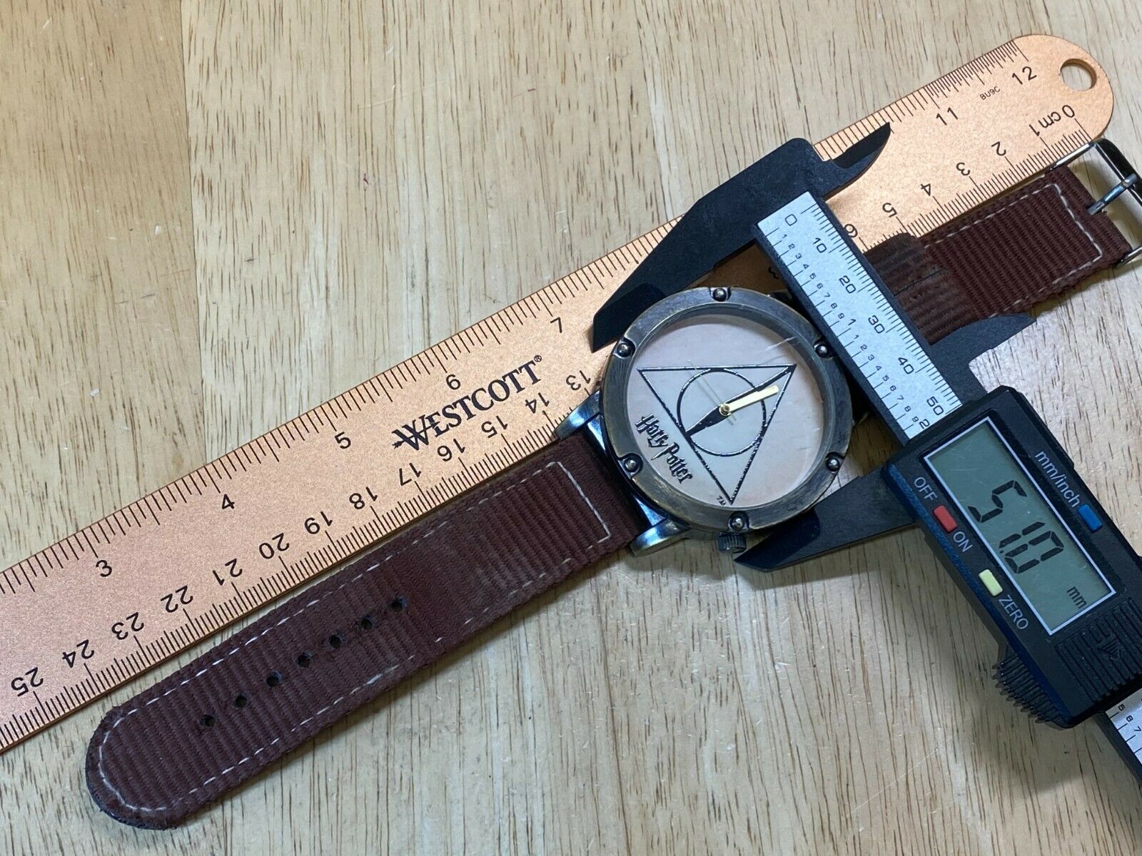 Watch dimension and size: please review the last image for size measurements. Shown on caliper is the approximate watch width in mm without crown or button.