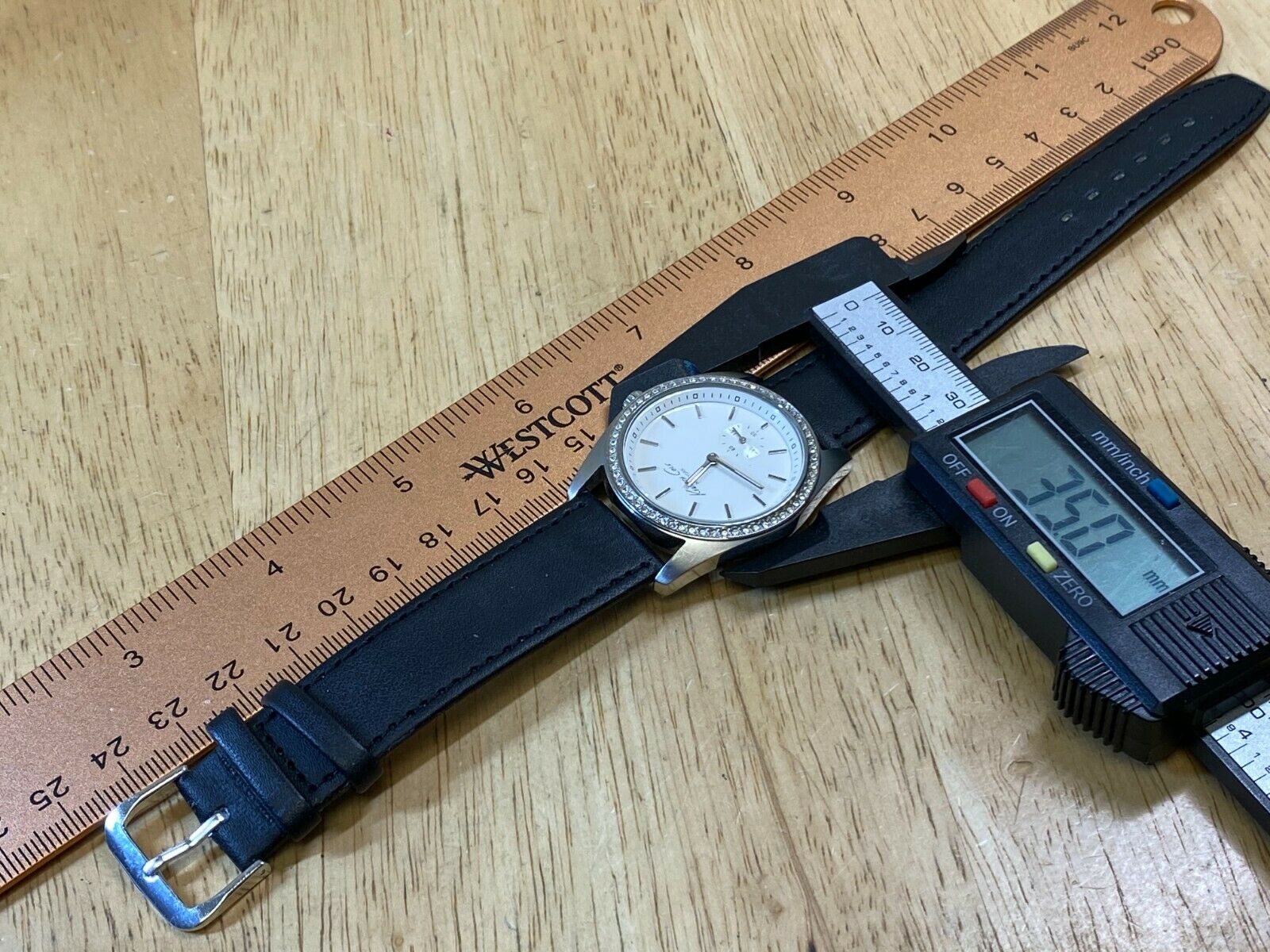 Watch dimension and size: please review the last image for size measurements. Shown on caliper is the approximate watch width in mm without crown or button.