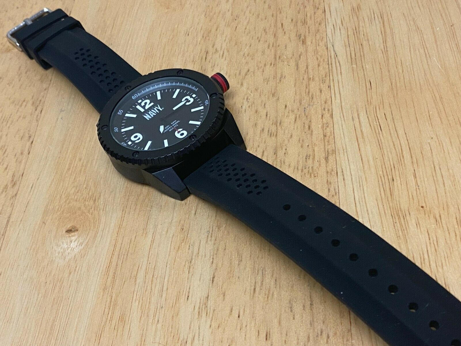 Nice America's Navy Mens 50m Beefy Black Analog Quartz Watch Hours~New Battery