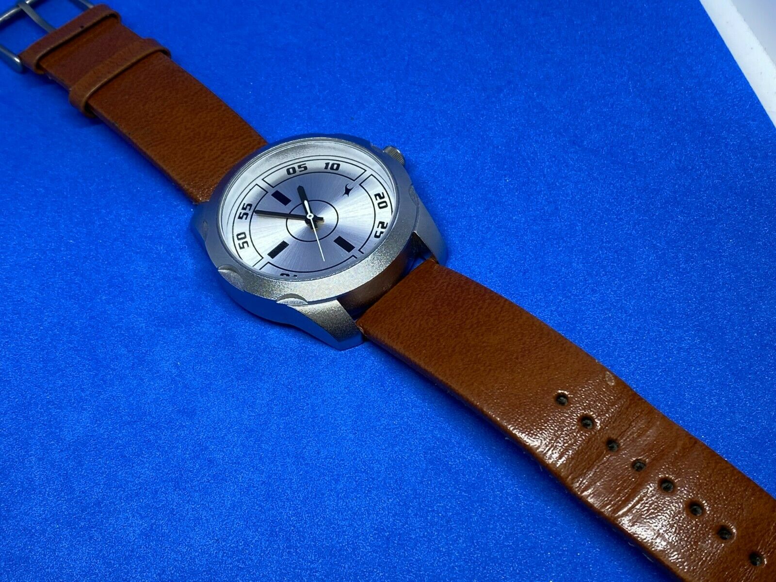 Nice Fastrack India DD876 Mens 50m Leather Analog Quartz Watch Hours~New Battery