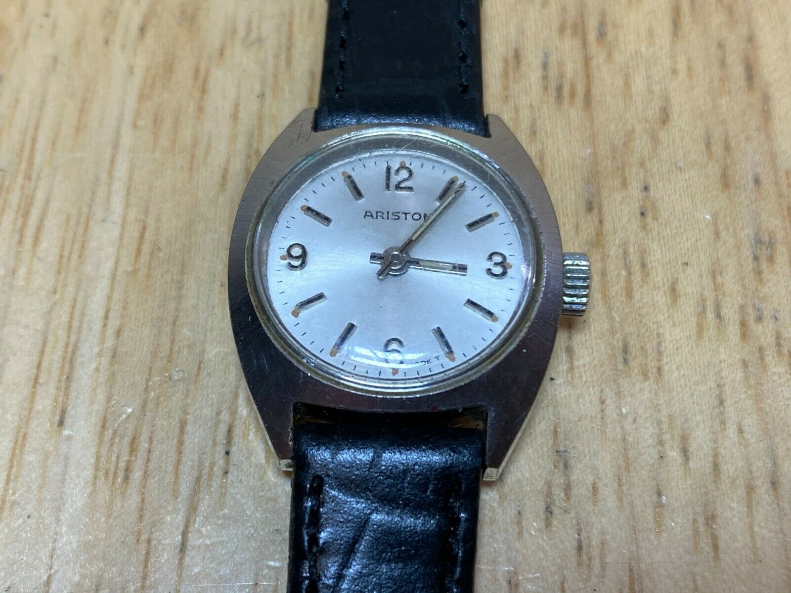 This watch runs when being wound. However, the crown doesn't set time. I am not sure what will take to fix so this watch is sold as is for parts repair. Please review attached images to make your judgment on the cosmetic condition. These images are important part of the listing. You will get what you see (sorry but stand, table and ruler are not included). Please also reading entire text in the description regarding used, old, vintage watches in general. As an used vintage item in general, there might be some dirt, scratches, scuffs, discolorations, and/or other forms of wear here and there, but nothing major for the age in my view except for visible scratches on crystal, notable wear on case and non-original band marked "AK". Again, please carefully review images to make your own evaluation on cosmetic conditions from different angles. Please do not hesitate to ask if you have any questions.