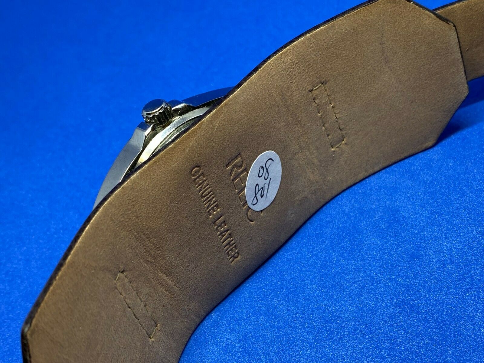 Relic Men Leather Bund Band Animated LCD Dial Analog Quartz Watch Hours~New Batt