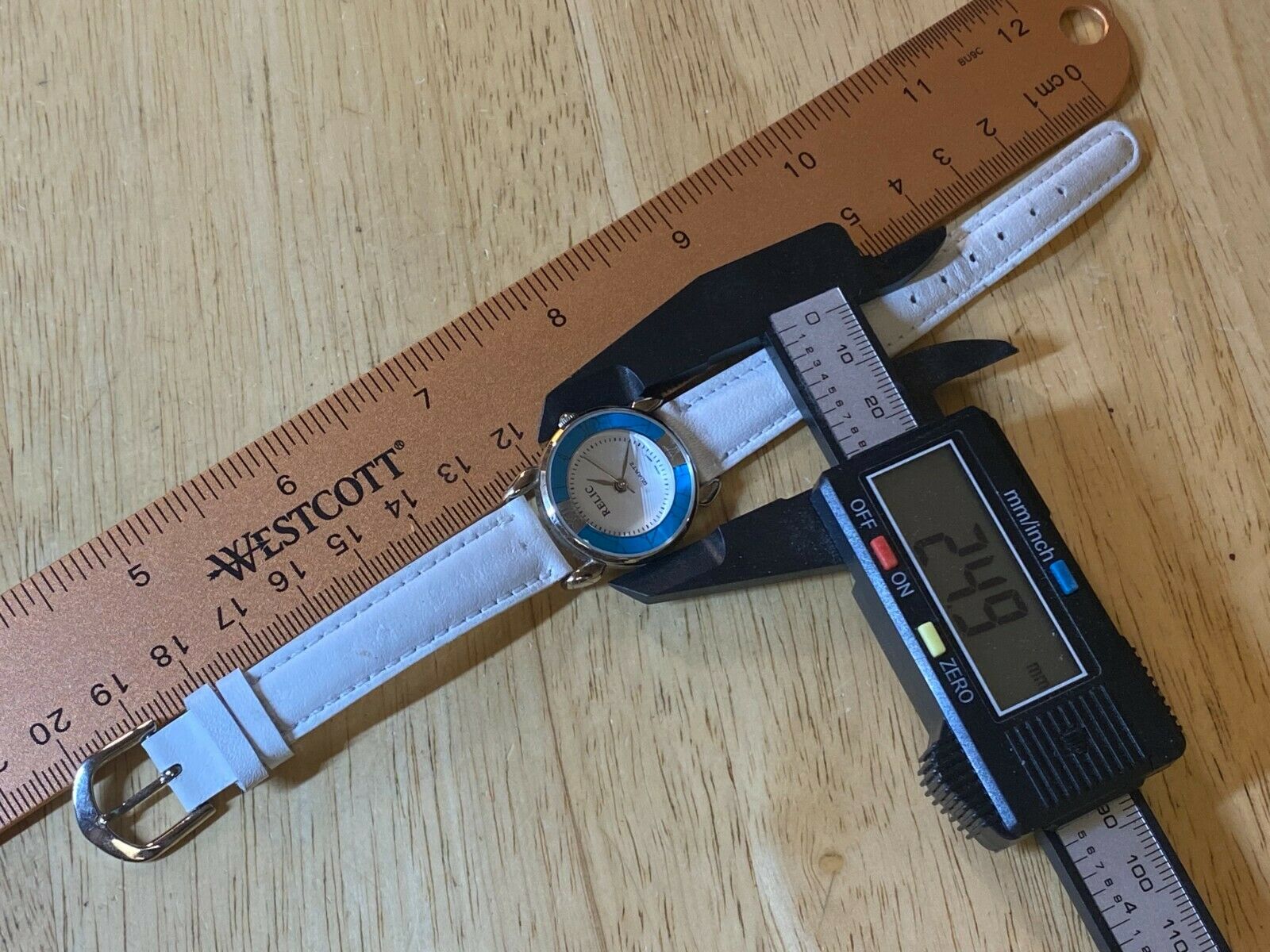 Watch dimension and size: please review the last image for size measurements. Shown on caliper is the approximate watch width in mm without crown or button.